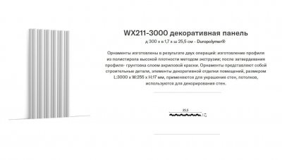 Декоративная панель Orac Decor FLUTE WX211-3000 продаются по цене 5 469 руб. Производство Бельгия. Лепнина Orac Decor WX211-3000 представлена в единственном цвете.